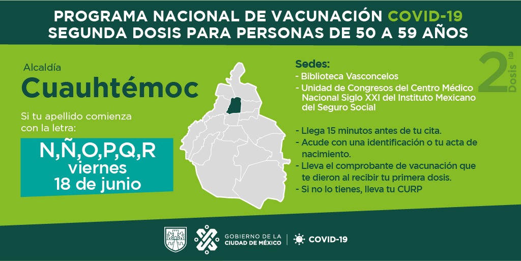 El gobierno de la ciudad de méxico informó que el próximo martes iniciará la vacunación contra el covid para adultos de 40 a 49 años en las alcaldías el gobierno de la ciudad de méxico informó que la capital continuará en color verde del semáforo epidemiológico, las dos siguientes semanas.